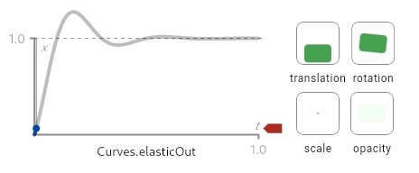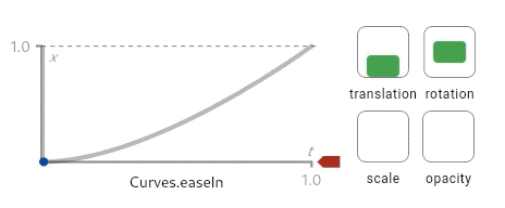 • Las curvas se usan para ajustar la tasa de cambio de un parámetro a lo largo del tiempo. Cuando se ejecuta una animación, es común aplicar una curva de aceleración para que la tasa de cambio sea más rápida o más lenta al principio o al final de la animación. Las curvas toman un valor de entrada entre 0.0 y 1.0 y muestran un valor de salida entre 0.0 y 1.0.