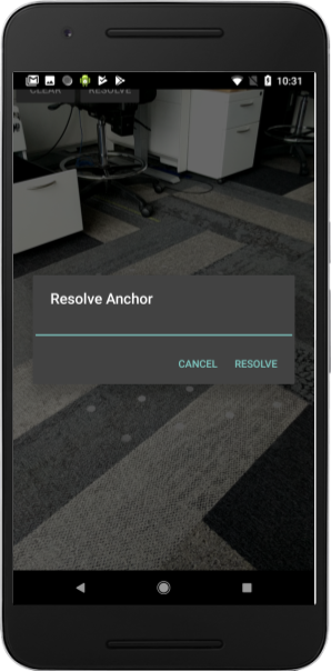 Cloud Anchor API を使用すると、Cloud Anchor ID でアンカーを解決できます。これによって、ホストされた元のアンカーと同じ物理的な場所に、新しいアンカーが作成されます。解決処理の間、デバイスはホストされた元のアンカーと同じ物理環境に向けられている必要があります。