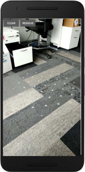 平面をタップしてアンカーをホストすると、[RESOLVE] ボタンが無効になりますが、[CLEAR] ボタンをタップすると再び有効になります。これは設計による動作で、一度に 1 つのアンカーのみ存在します。