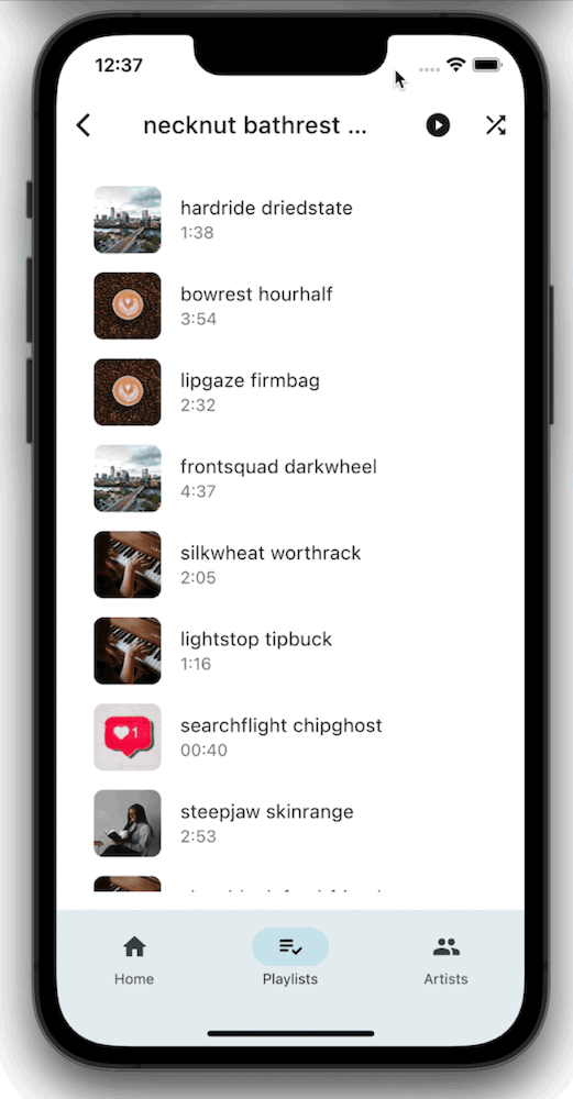 a3c16fc17be25f6c.png 마지막으로 lib/src/shared/views/hoverable_song_play_button.dart에 정의된 HoverableSongPlayButton 위젯을 사용하여 재생목록의 노래 번호를 재생 버튼으로 애니메이션 처리합니다. lib/src/features/playlists/view/playlist_songs.dart에서 Center 위젯(노래 번호 포함)을 HoverableSongPlayButton으로 래핑합니다.
