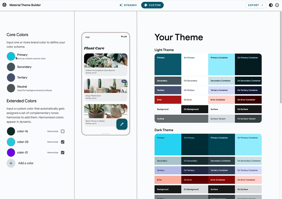 • 테마 설정: 모든 위젯에 관한 디자인 결정을 내릴 필요 없이 안정적으로 사용할 수 있는 디자인 시스템을 설정합니다.