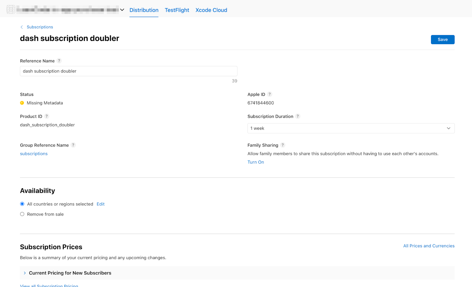 接下来,您将创建订阅。将“参考名称”设置为 dash subscription doubler,并将“产品 ID”设置为dash_subscription_doubler。