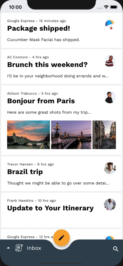 Başka kod eklemeden önce bir e-postaya dokunup e-posta görünümünü açarak uygulamayı çalıştırmayı deneyin. Yanıtla logosuna dokunmayı da deneyebilirsiniz. Alt uygulama çubuğu işlemleri, geçiş olmadan değişmelidir.