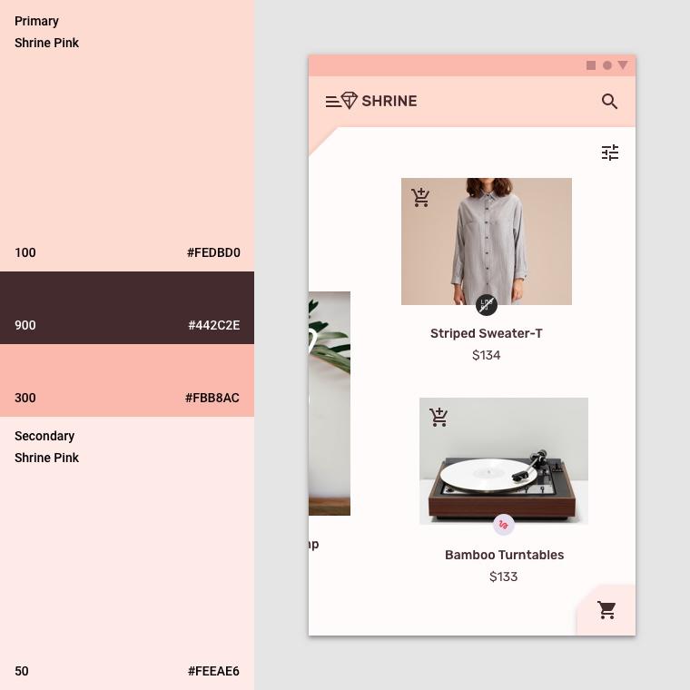 נוצרה ערכת צבעים שמייצגת את המותג Shrine, והמעצב מעוניין להטמיע את ערכת הצבעים הזו באפליקציית Shrine