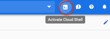如要啟用 Google Cloud Shell,請點選開發人員控制台右上方的按鈕 (應該只需幾分鐘就能佈建並連線至環境): |