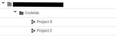 - 在 Google Cloud 控制台中的機構底下建立一個資料夾和兩個新專案 (可以重複使用現有的專案)。