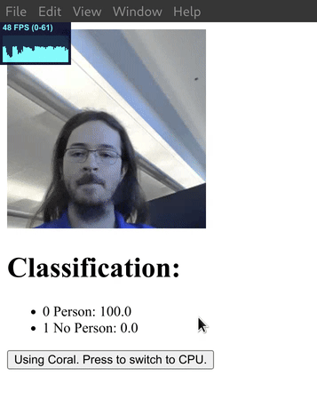 이 Codelab에서는 Teachable Machine을 사용하여 이미지 분류 모델을 학습시키고, JavaScript용 강력하고 유연한 머신러닝 라이브러리인 TensorFlow.js를 사용하여 Coral 하드웨어 가속으로 실행하는 방법을 알아봅니다. 웹캠의 이미지를 표시하고 Coral Edge TPU를 사용하여 이를 분류하는 Electron 앱을 빌드합니다. 이 Codelab의 완전한 버전은 sig-tfjs GitHub 저장소에서 확인할 수 있습니다.